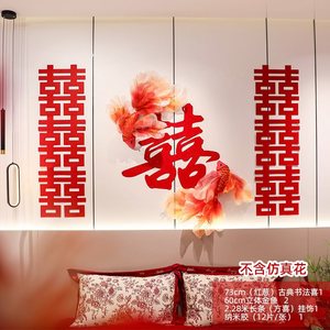 婚房布置装饰套装新结婚礼用男女方卧室酒店金鱼锦鲤喜字立柱摆件