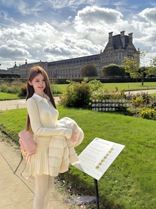 白水女 千金学院风 假两件针织衫a字半身裙女秋冬韩系针织套装