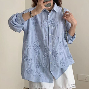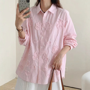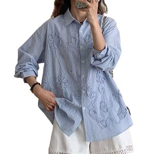 刺绣花朵森系田园风刺绣宽松百搭长袖衬衫上衣女装衬衣