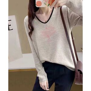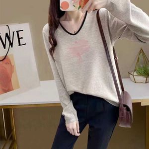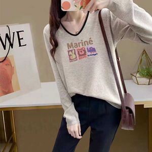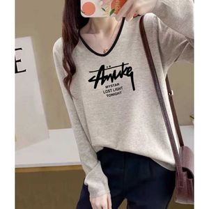 纯棉t恤女长袖早秋小心机V领显瘦宽松显瘦打底衫上衣拼接设计感