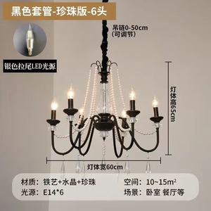 法式复古水晶灯客厅灯美式蜡烛楼梯灯高级感黑色别墅挑空复式吊灯