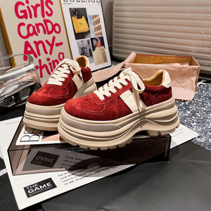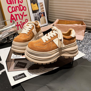 欧货反毛皮真皮厚底松糕小个子6cm增高德训鞋休闲板鞋运动鞋女鞋