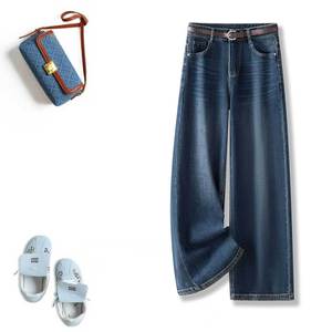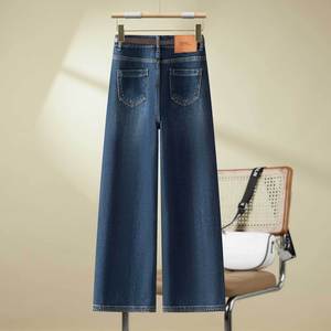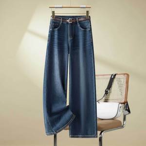 蓝色牛仔阔腿裤2025年秋季新款垂感修身直筒裤高腰时尚休闲长裤