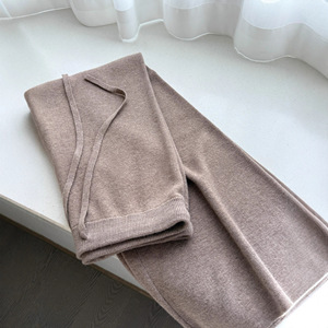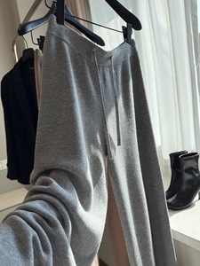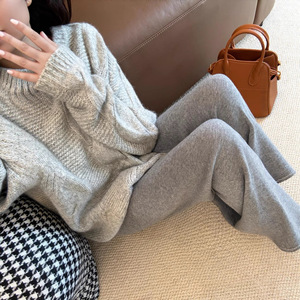 广州十三行高货爆款~羊毛卷边针织阔腿裤女秋冬高腰垂感拖地长裤