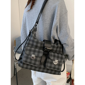 秋季休闲大容量腋下包包女2025新款格纹托特包多功能单肩双肩包