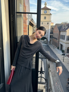 FONE简禾极简风荡领针织衫女2025秋季设计感掐腰捏褶长袖T恤58257