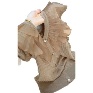 早秋穿搭女2025新款小众温柔风褶皱拼接欧美风毛针织衫长袖上衣潮