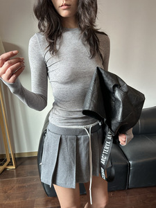 莱赛尔修身高级感圆领T恤早上衣秋冬天丝美利奴羊毛打底衫长袖女