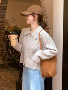 法式复古拉链翻领毛衣外套女秋季穿搭奶呼呼软糯宽松针织开衫上衣
