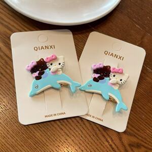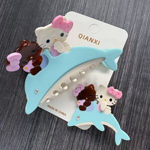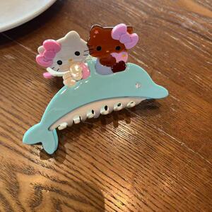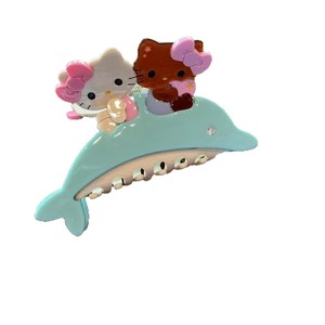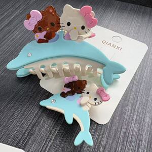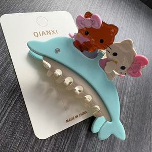 新款KT醋酸拼接甜美趣味冲浪海豚KT发夹抓夹可爱少女高级感盘发鲨