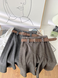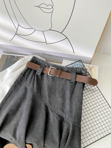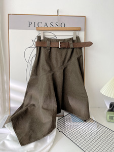美拉德艺术感不规则半身裙女秋季辣妹设计感棕色牛仔中长裙子6282