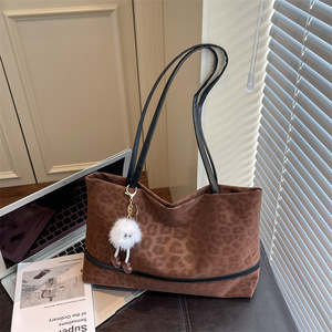 秋季韩版小众复古豹纹包包女时尚百搭通勤单肩包大包大容量托特包