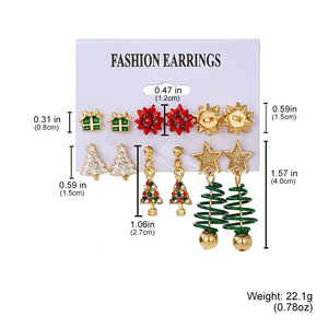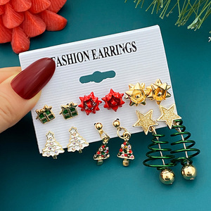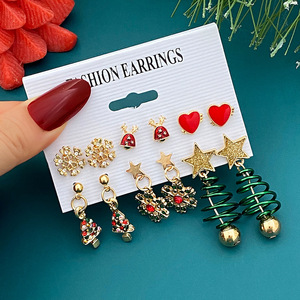 欧美跨境新款圣诞节耳环麋鹿圣诞老人麋鹿圣诞树吊坠耳饰套装女生