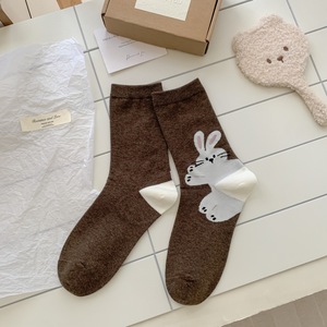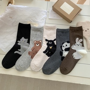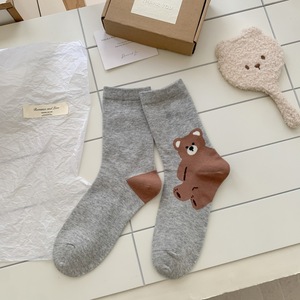 无骨袜子女秋冬新款日系后跟立体卡通中筒袜ins潮可爱小熊堆堆袜