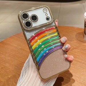 适用iPhone17promax手机壳流沙七彩虹苹果16闪钻15高级感防摔软套