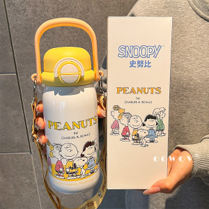 史努比大容量600mL双饮吸管保温杯不锈钢卡通儿童水杯子便携水壶