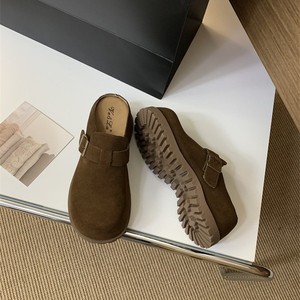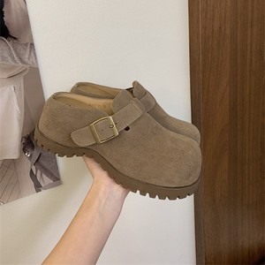 厚底勃肯鞋女款2025秋季新款增高灰色复古一脚蹬塔扣包头勃肯鞋