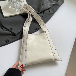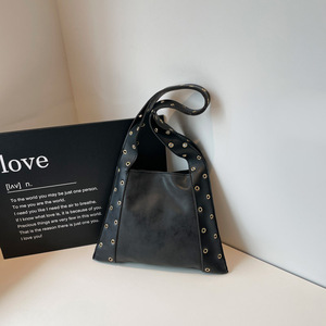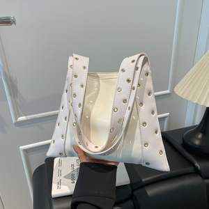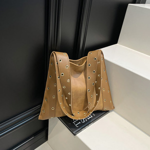 跨境女包2025秋冬新款金属铆钉单肩休闲腋下包上班通勤托特大包