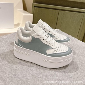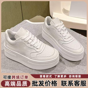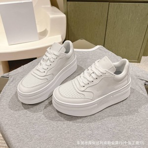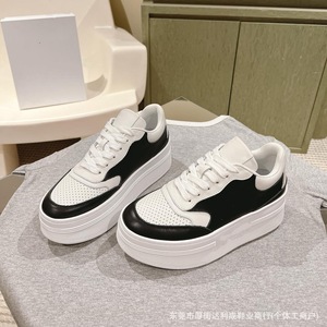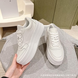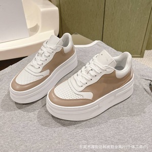 凯旋门厚底小白鞋女2025新款系带百搭真皮拼接纯色增高休闲运动鞋