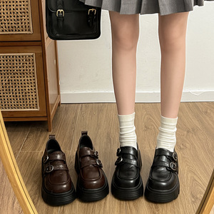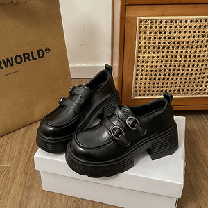 黑色英伦风厚底粗跟小皮鞋女2025新款秋季配裙子乐福鞋子玛丽珍鞋