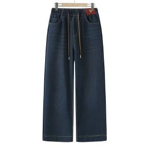 秋季新款复古松紧高腰牛仔裤女时尚洋气显瘦弹力休闲百搭阔腿裤