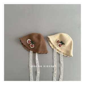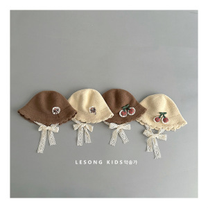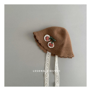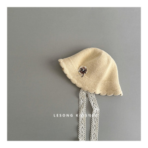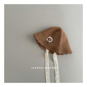 儿童森系文艺范儿秋冬保暖蕾丝帮带针织渔夫帽