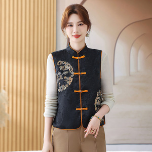 新中式国风马甲女2025春秋新款刺绣坎肩上衣中年妈妈秋装马夹外套