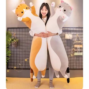 跨境长条猫抱枕毛绒玩具公仔可爱大号布娃娃靠枕懒人睡觉夹腿玩偶