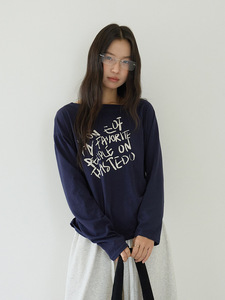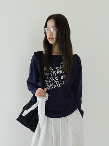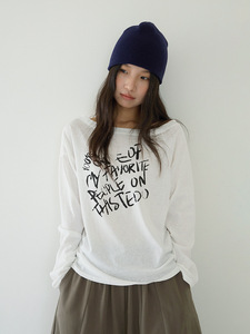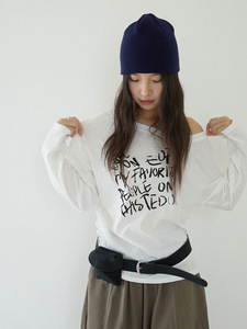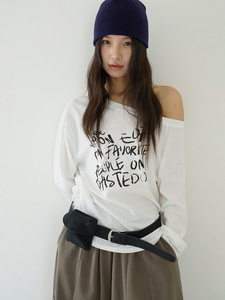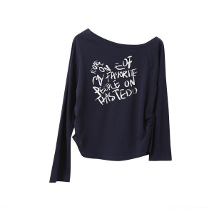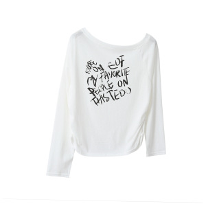 【欧凡】 美式字母印花斜肩微透长袖T恤女秋慵懒宽松罩衫上衣3175