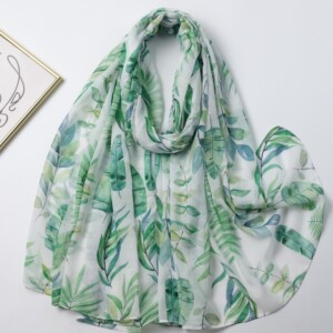 80支数码清新水草外贸跨境直播印花丝巾春秋百搭保暖围巾披肩