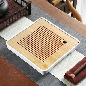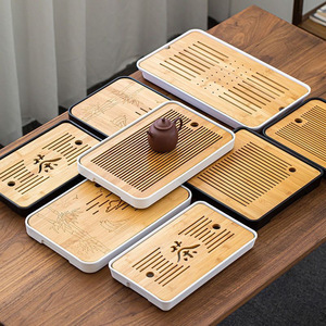 简约茶盘家用储水日式圆形竹制托盘功夫茶具小茶台干泡盘茶海排水