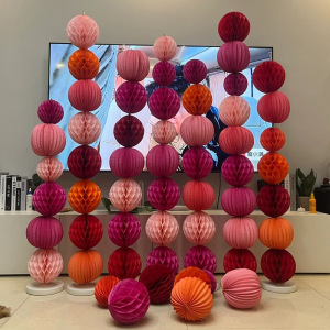 网红蜂窝球立柱地飘装饰男女方婚礼房间拉花婚房布置全套批发直销