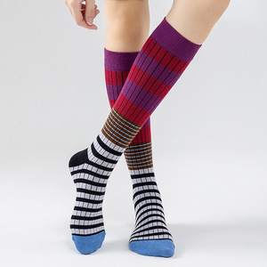 春夏爆款复古美拉德风撞色条纹户外时尚显瘦长筒棉袜及膝袜堆堆袜