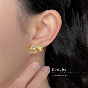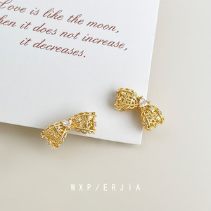 文艺复古微镶锆石蝴蝶结蚊香盘耳夹中古风时尚气质百搭镀18K耳饰