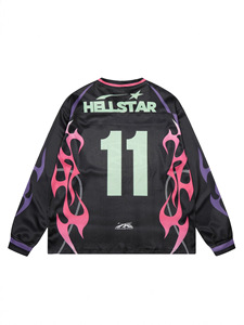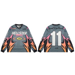 跨境美潮Hellstar新款美式街头嘻哈休闲透气百搭网眼长袖