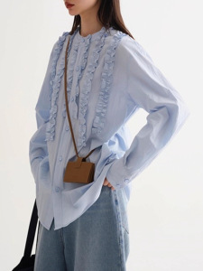 Babymoon 荷叶边小众气质蓝色衬衫长袖春秋新款宽松设计感上衣女
