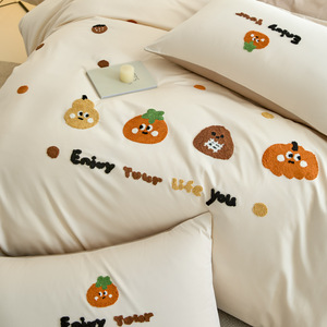 2025新款毛巾绣长绒棉纯棉四件套全棉a类学生宿舍三件套床单床笠