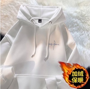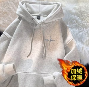 连帽卫衣情侣秋冬季加绒加厚百搭潮牌字母印花美式上衣服外套