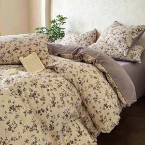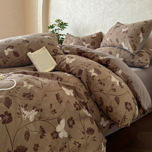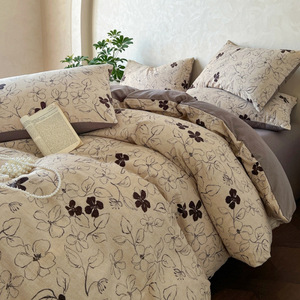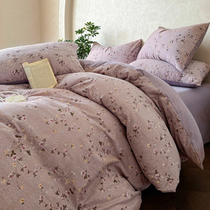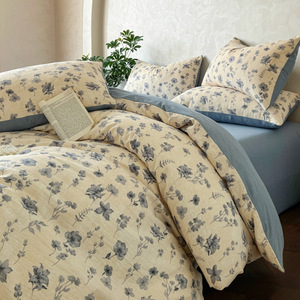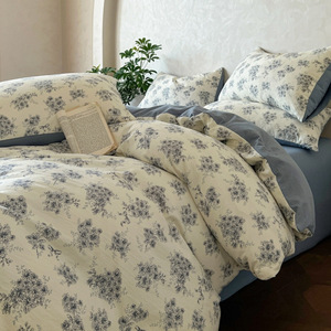床品四件套a类母婴级亚麻印花宿舍三件套床上用品床笠床单被套件