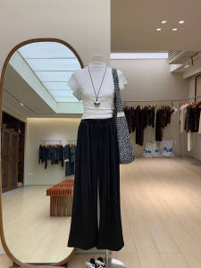 气质老钱风垂感西装阔腿裤松紧腰休闲显瘦长裤高级编织腰带直筒裤