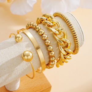 粗链条圆珠手链 5件套(环保)铁+铝链+CCB 金色