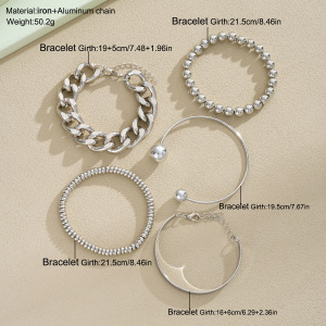 欧美跨境爆款CCB粗链条圆珠手链手镯5件朋克叠戴嘻哈手饰套装批发