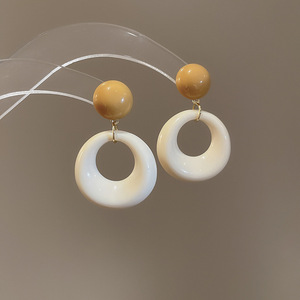 银针树脂虎眼石圆形不对称耳环休闲时尚百搭耳钉设计感小众耳饰女