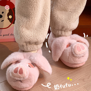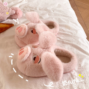 卡通棉拖鞋女士秋冬季2025新款飞天小猪居家保暖厚底室内棉鞋ins