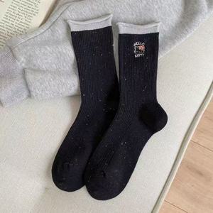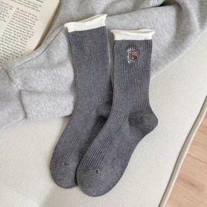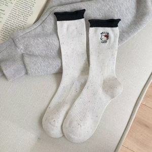 双针袜子女长袜高筒秋冬季透气kiti刺绣可爱卡通ins潮百搭长筒袜