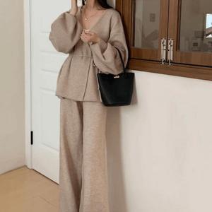 2025秋冬新款时尚美式复古慵懒风针织套装女开衫外套阔腿裤两件套