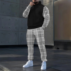 亚马逊TEMU跨境欧美潮流男士休闲百搭时尚运动连帽卫衣套装25年新