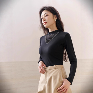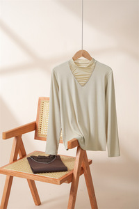 2025半高领设计感抽褶洋气长袖女t恤秋冬新款修身内搭打底衫