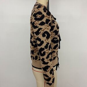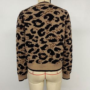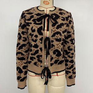 洋气套头时尚蝴蝶结绑带豹纹针织毛衣开衫秋冬季圆领长袖提花开衫