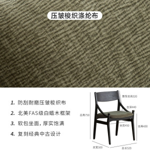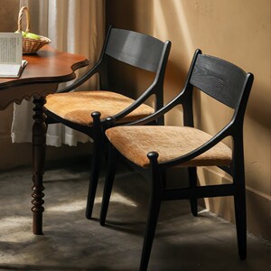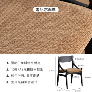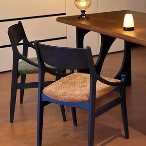 实木侘寂风扶手椅轻奢咖啡厅软包椅面餐椅原木高级复古洽谈靠背椅
